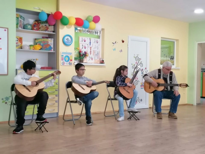 Малките виртуози от Школата по китара и тамбура концертираха пред децата от детските градини „Слънце” и „Щастливо детство”. Преподавателят Цветан Радков запозна малчуганите с музикалните инструменти и представи „Петльова ръченица” на тамбура. Талантливите китаристи Велизара Костова, Матей Георгиев, Николай Иванов и Симеон Иванов изсвириха по една кратка детска песничка. С изпълнения на популярните пиеси „Черният Орфей”, „Валс Венецуела”, „Странници в нощта” и „Любовен мотив” китарният оркестър впечатли и предизвика интереса на малките зрители към свиренето на музикален инструмент.