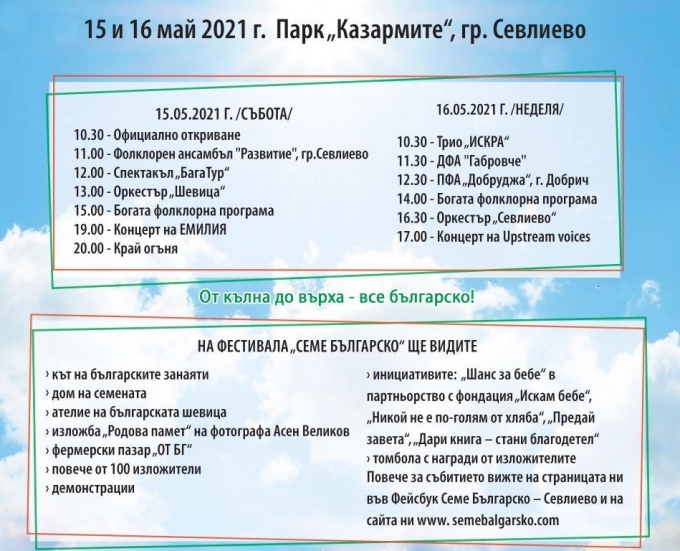 След едногодишно прекъсване зарази пандемията от коронавирус, през 2021 г. Севлиево отново е домакин на националния фестивал "Семе българско".
