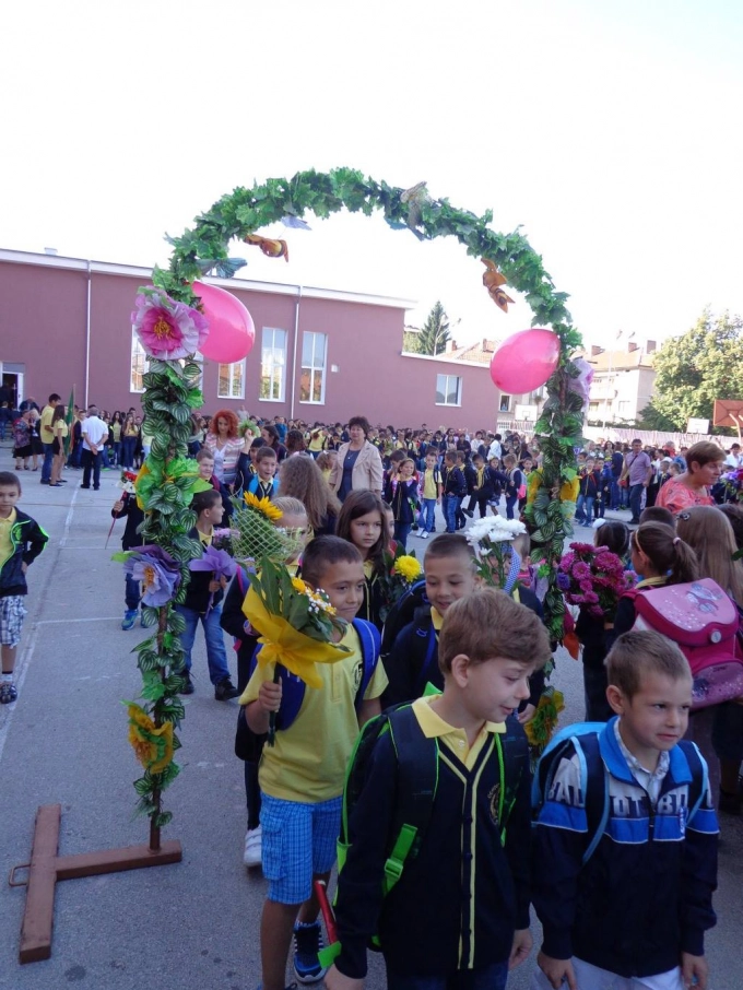 На този ден в училището традиционно отслужват водосвет за здраве на учениците и учителите. Поздравления към децата поднесоха Николина Николова, председател на Училищно настоятелство и Тодор Тодоров, председател на Обществения съвет. Учениците и учителите поздрави и директора Николай Захариев, който поведе колоната с първокласниците.