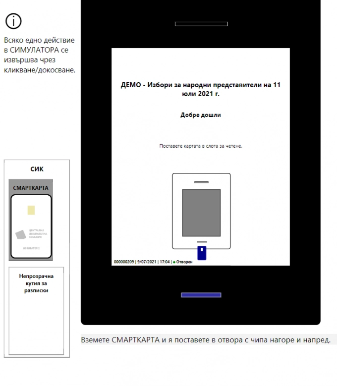 На сайта на Централната избирателна комисия има симулатор за машинно гласуване, чрез който може в реално време да се проиграе самото гласуване.