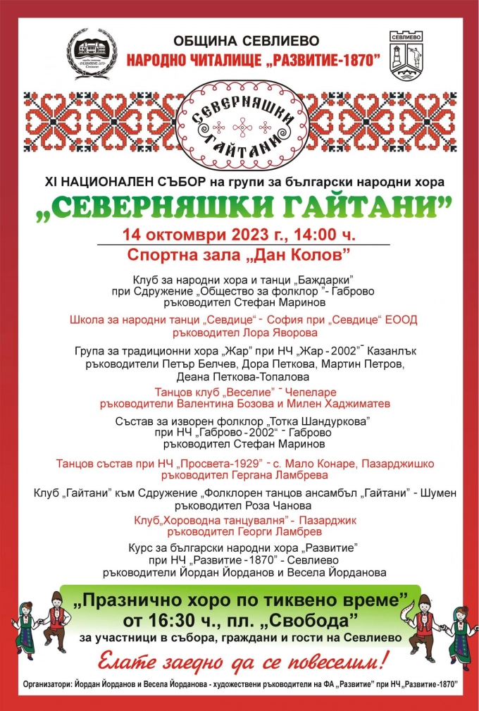 Това е единайстото издание на събора, който се организира от Община Севлиево, Народно читалище „Развитие-1870” и ръководителите на фолклорен ансамбъл „Развитие” Весела Йорданова и Йордан Йорданов.