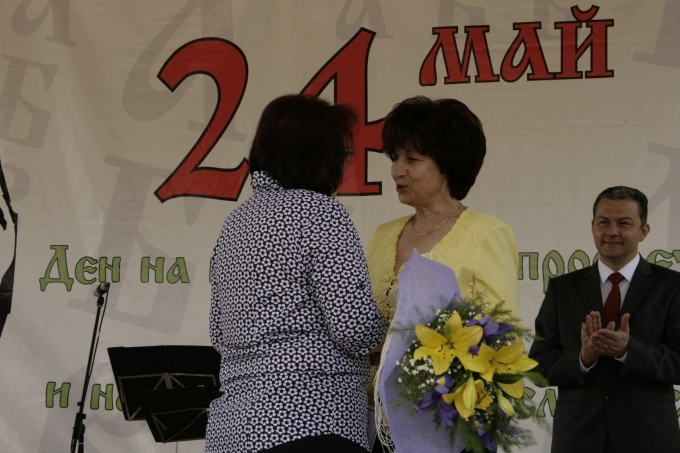Надя Михайлова, която бе удостоена с почетната грамота "Неофит Рилски" на Министерството на образованието и науката, получи днес своето отличие от кмета на общината. Видимо развълнувана, тя благодари за признанието, но се обърна специално към колегите си от детска градина "Пролет", които са я номинирали за званието.