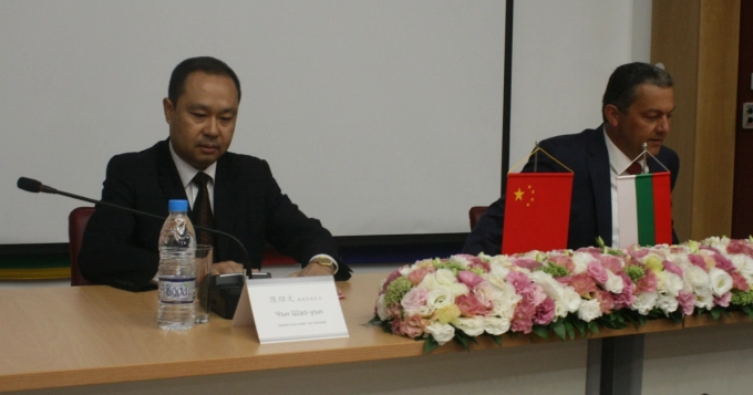 Заместник-кметът на Нанхай Чън Шао-уън с кмета на Севлиево Иван Иванов