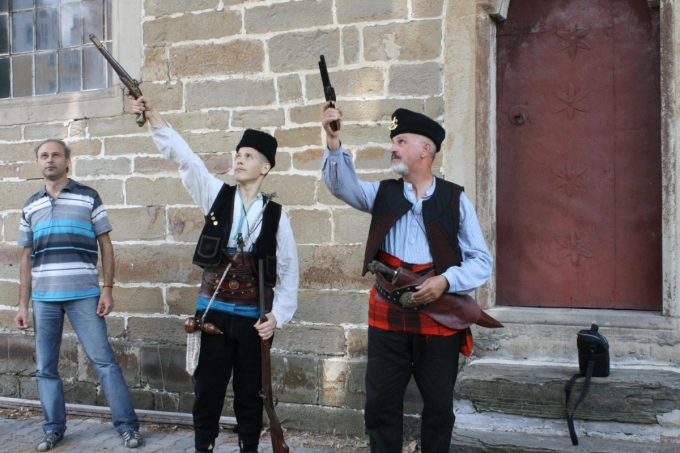 Така шепа севлиевци почетоха днес по обед 142 години от обесването на Стефан Пешев. Честването организираха от сдружение "Традиция" - Севлиево, чийто председател Стефан Попов дойде на поклонението облечен като войвода - с шаячни потури и елече, втъкнати в пояса ятяган и пистолет. Облечен като войвода бе и Румен Гатев, а носията сам си сглобил, събирайки оттук оттам отделните й части.