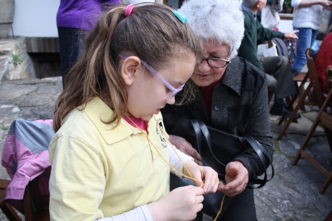 И там под асмата, днес деца плетоха на пет куки, повярвайте, трудничко им беше, други ваяха предмети от глина, а един смелчага хвана чука и длетото, редом с директора на музея Найден Петров, за да прави дърворезба. А какво старание само имаше у децата. Вглъбени в работата си, особено плетачките, тъй като тях куките най-малко ги слушаха.