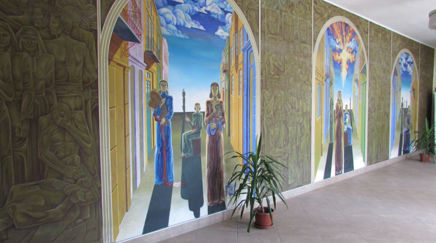 Световноизвестният български художник Николай Панайотов, който живее и работи от 30 години във Франция, реставрира соствения си стенопис във фоайето на Народно читалище „Развитие-1870”.