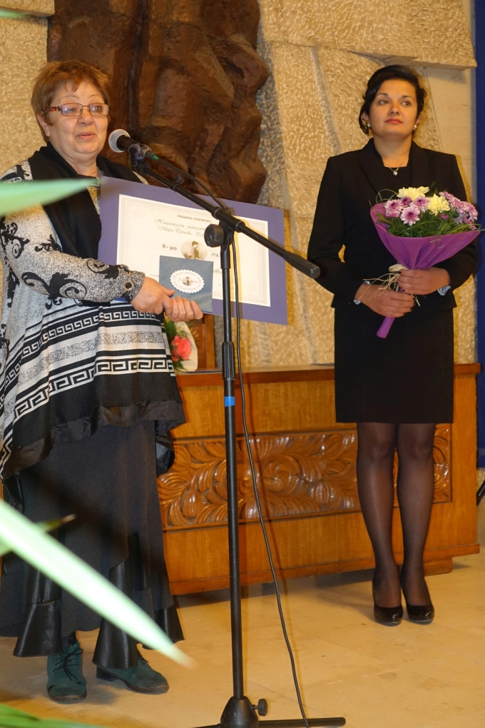 Отличието бе присъдено снощи на церемония, състояла се в централното фоайе на Община Севлиево в присъствието на участници в конкурса, представители на културните и бизнес среди и гости. Втората награда бе за Катя Маринова от Ямбол, а трета получи Гюлшен Алиева от Плевен.