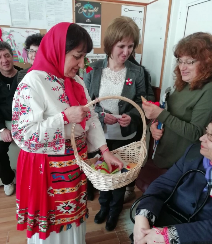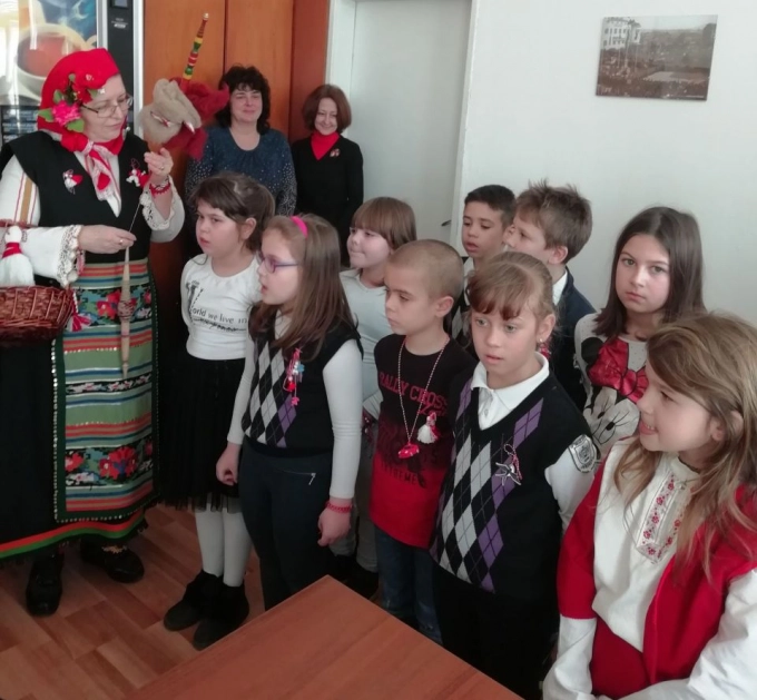 Както всяка година на първи март, и тази година ръководството на СУ „Васил Левски“ събра своите бивши учители, вече пенсионери, „на раздумка“. За пролетното им настроение се погрижиха първокласниците от групите за целодневно обучение, които пяха и рецитираха, наричайки за здраве и плодородие, под ръководството на Десислава Ганева и Ваня Ангелска. А между тях, облечените в червено и бяло Пижо и Пенда.