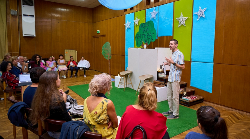 Под звуците на пиано и светлините от фенери, посланиците на четенето в Нощта на литературата представиха пред гостите на събитието своите специално избрани откъси от книги. Марияна Петрова прочете откъс от „Матилда“ на Роалд Дал, Даниела Йорданова - шеговити детски стихотворения от Асен Босев, Теодора Маринова – откъс от „Хвърчащата класна стая“ на Ерих Кестнер, а Таня Попова избра да прочете откъс от „Мечо Пух“. С четене по артистичен начин гостите-четци изписаха усмивки по лицата на публиката. Всеки от четците бе подбрал откъс, който по един или друг начин представя техните емоции или дори самите тях – коментираха гостите на събитието.
