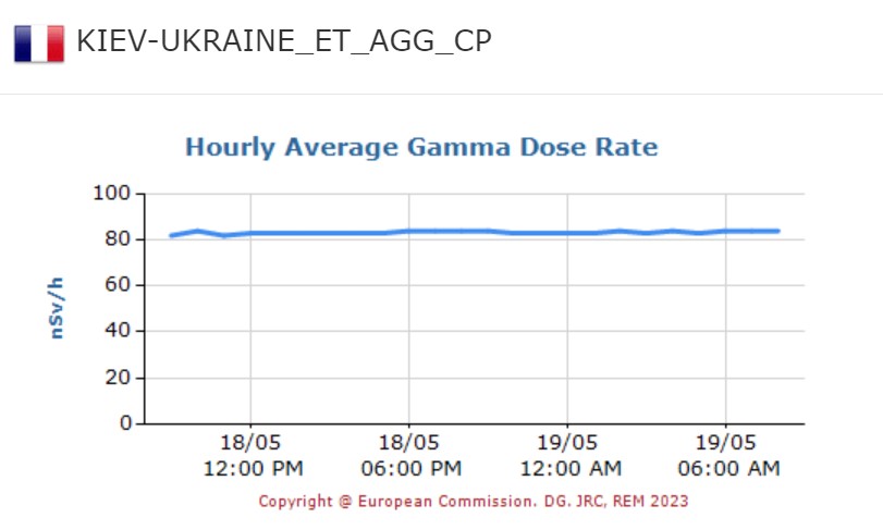 Европейската система за радиационен мониторинг не потвърждава информацията за повишен радиационен фон в Украйна или съседните държави – според данните на измервателните уреди гама фонът в Киев се движи между 80 и 90 наносиверта (nSv) през последния месец, като стойността от 90 nSv не е надвишавана. Тези нива са значително по-ниски от естествения радиационен фон в много други точки на Европа. Няма промяна и в показанията на измервателните станции в съседните на Украйна държави.