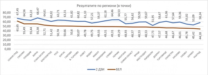 МОН представи в диаграма резултатите по региони, източник: МОН