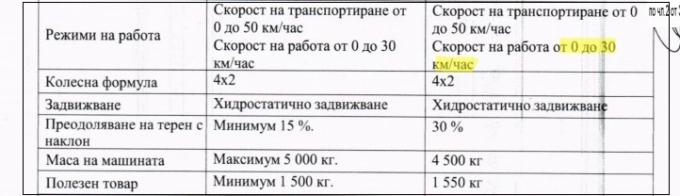 Според сайта на производителя, техническите параметри на модела и марката в голямата си част се припокриват със заложените в техническата спецификация на първата обществена поръчка. Изискването за режим на работа напълно съвпада с параметрите на производителя, пълно съвпадение има и при масата, полезния товар и възможностите за преодоляване на терен с наклон.