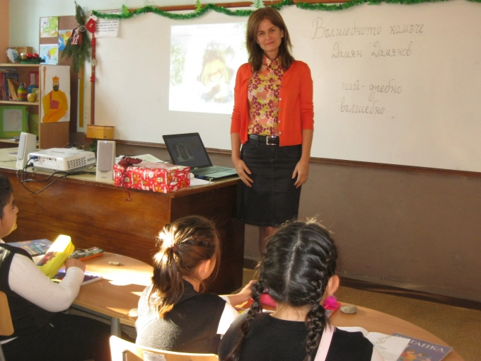 С много емоция г-жа Кръстина Петкова запозна учениците си със стихотворението на Дамян Дамянов „Вълшебното камъче“. А в края на часа всеки от присъстващите отнесе със себе си по едно „вълшебно камъче“ и посланието, че само запазилите детското в себе си могат да открият вълшебното камъче и много други вълшебства, които иначе са орисани да виждат само децата.