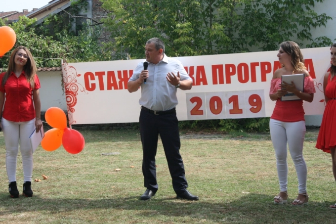 Ръководителят на стажантската програма Светла Георгиева се обърна към младите хора с "колеги" и им благодари за огненото лято, снимка: "Севлиево онлайн"