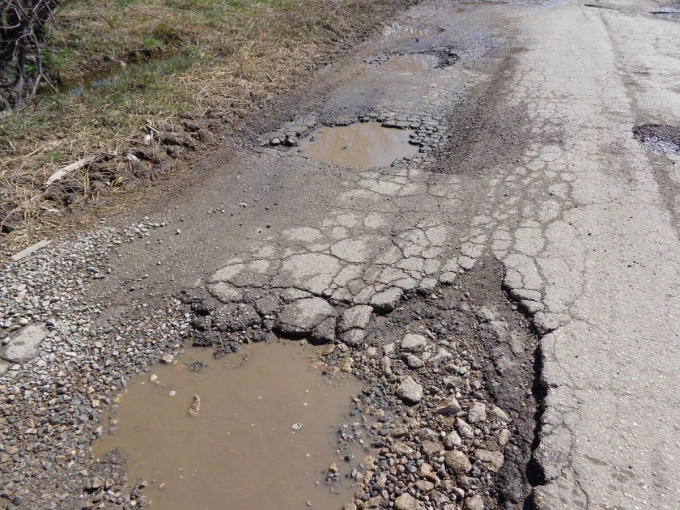 Това е само една от многото дупки, осеяли пътя към Агатово, Крамолин, Малък Вършец, снимката е споделена от редовно пътуващ по пътя гражданин в социална мрежа