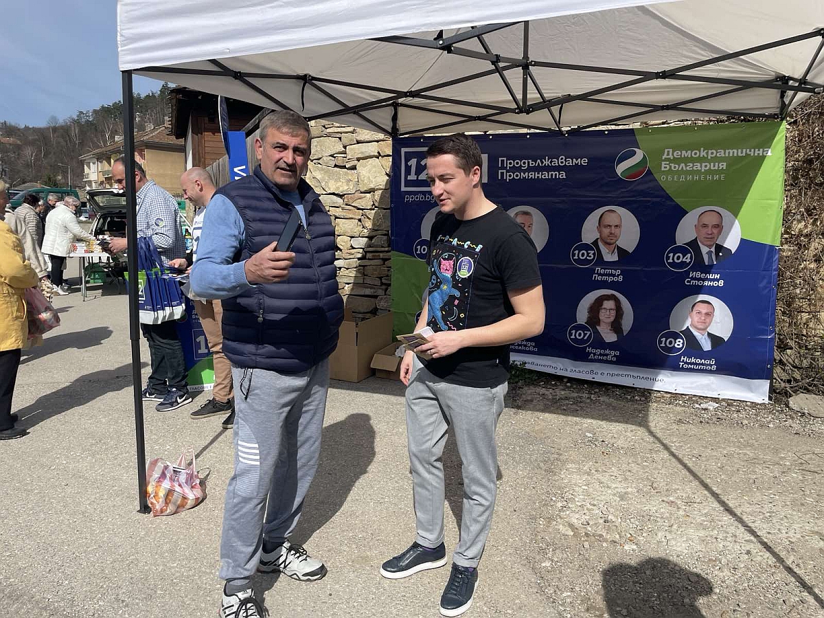 "Успех!" пожелаха граждани на Трявна на водача на листата на "ПП-ДБ", снимка: Предизборен щаб на коалиция "ПП-ДБ"