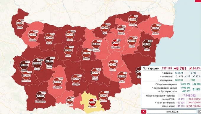 В страната заразените към тази сутрин са 6761, от тях само 24% са ваксинирани.