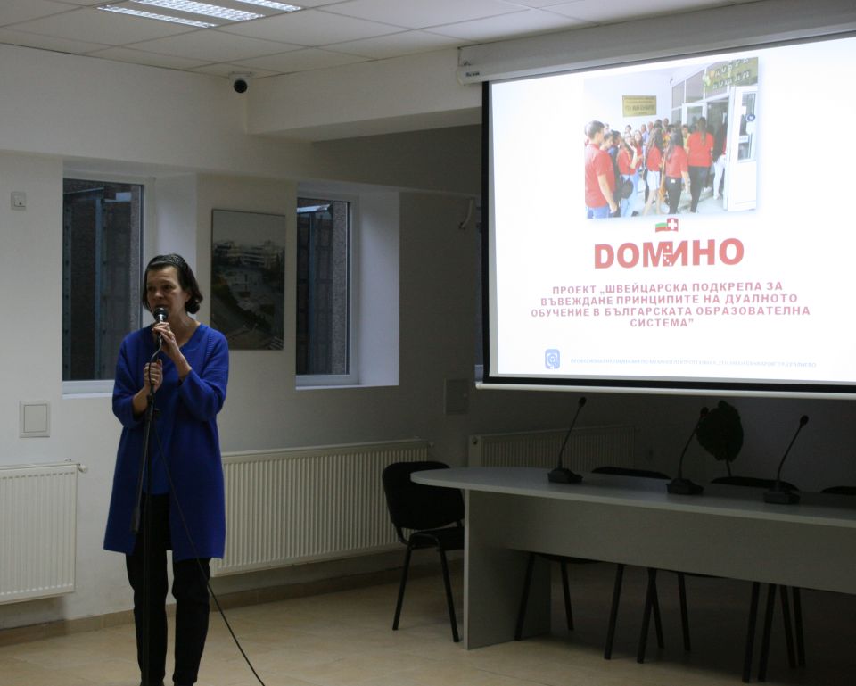 В Севлиево 51 ученици от Професионалната гимназия по механоелектротехника „Ген. Иван Бъчваров” от две професии - машинен техник (специалност „Машини и системи с цифрово-програмно управление“) и електротехник (специалност „Електрообзавеждане на производството”) учат по швейцарската система „учене чрез работа“. Техни партньори в рамките на проекта ДОМИНО на Българо-швейцарската програма за сътрудничество са фирмите "Идеал Стандарт-Видима", АББ България, клон Севлиево и ЕМКА.