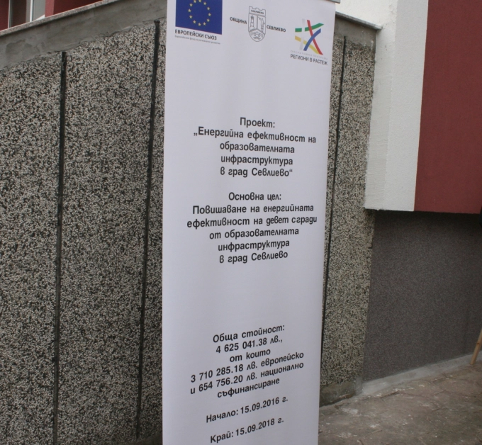 Заместник-министърът на регионалното развитие и благоустройството Деница Николова и кметът на Севлиево д-р Иван Иванов откриха днес обновените девет училища и детски градини по проекта „Въвеждане на мерки за енергийна ефективност на сгради от образователната инфраструктура“, който е на обща стойност 4 625 041, 38 лв.