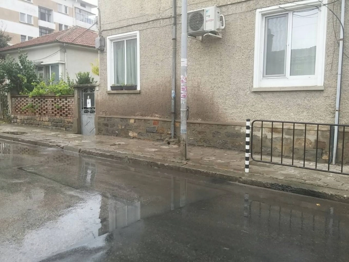 Фасатата е мокра от юли, когато приключва ремонтът на ул. „Д-р Иван Филипов“ в Севлиево. Ремонтът е основен, по улицата се сменя изцяло водопровода, след това се преасфалтира. Къщата на сем. Ангелови се намира на пресечката на основно ремонтираната улица и една от главните улици в града – ул. „Опълченска“, която е и от най-натоварените в гр. Севлиево. Участъкът е прав, а движението на колите с висока скорост, убедих се на място.