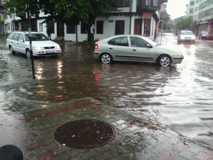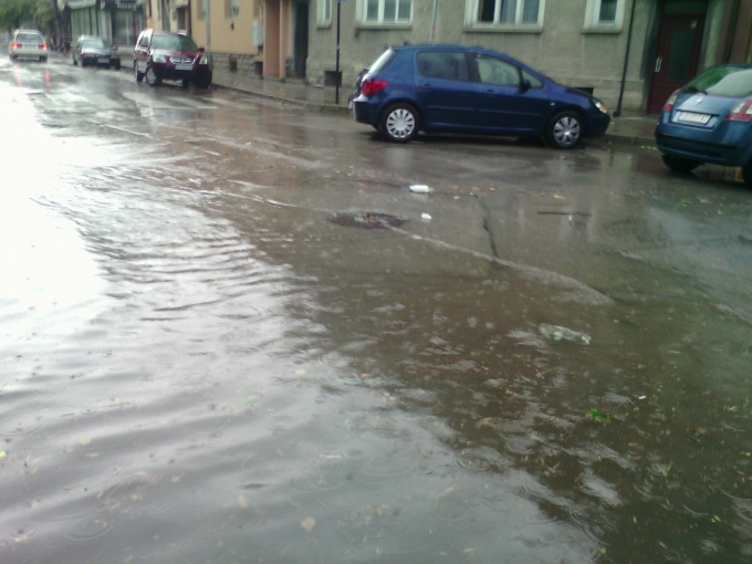 Улица „Петко Рачев Славейков“ не личеше къде е. Водата там бе стигнала десетина сантиметра и половин час след началото на бурята започна да залива тротоарите. Същото е било положението и на други места в Севлиево.