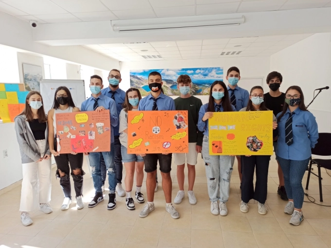Темата на ученическата работилница, организирана в рамките на визитата, бе „Човешките права“. След като участниците се опознаха, като отговаряха на въпроси за мечтите, страховете и хобитата си, се разделиха на групи и изготвиха постери за избрани от тях човешки права.