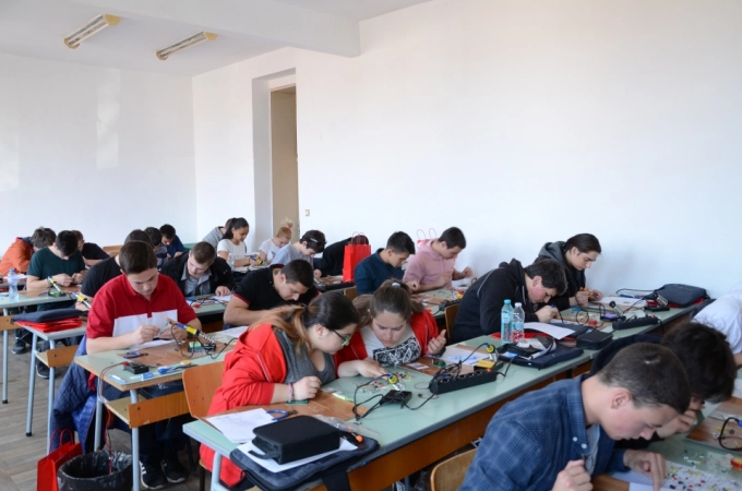 Състезанието премина през два етапа: решаване на тест и изпълнение на практическа задача, свързана с електрически монтаж на печатна платка по дадена схема за определено време. Изключително трудна бе втората част, която изискваше състезателите Драгомир Маринов и Георги Димитров сами да подбират елементната база. Показаните резултати доказаха освен знания и умения, че могат да работят в екип.