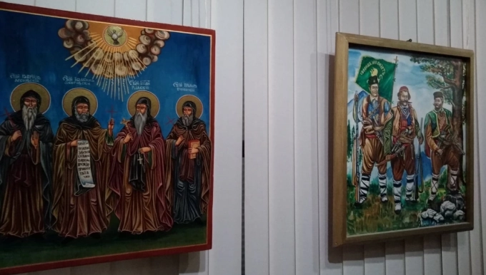 Икона е дума от гръцки произход (eikon), която означава "образ", "портрет". Иконописта е изкуство, зародило се във Византия през ІV век и разпространено в целия православен свят. Отначало икона са наричали всяко изображение на Спасителя, Божията майка, светец, ангел или събития от историята на Църквата, независимо от това дали става дума за скулптура или живопис. Всичко това научаваме от сайта за икони magazin.icons-bg.com. А то много добре приляга на идеята за изложбата на Петър Първанов. Защото между иконите му откриваме рисунки на войводи и революционери, нарисувани с бунтовническата униформа, с калпак на глава и оръжие в ръка. Нищо канонично, нито опит за придаване на святост в образите, а в същото време светят като правослевните икони, между които са подредени. Каква е идеята? Разяснява директорът на галерията художникът Васко Василев.