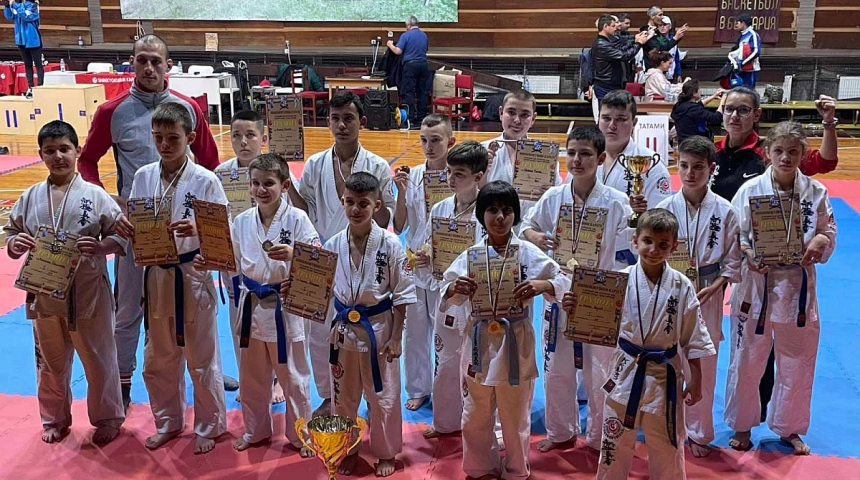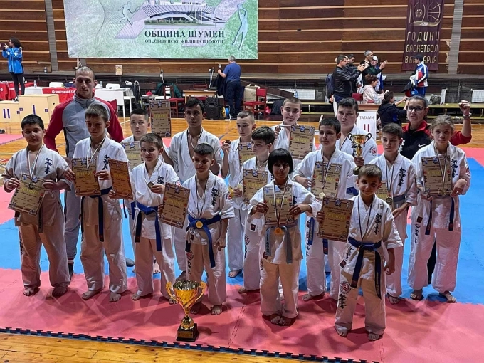 Девет златни, два сребърни, четири бронзови медала и купа за най-техничен състезател на Александър Косев, плюс отборната купа за второто място, е равносметката от участието на севлиевския клуб по карате шинкиокушинкай в турнира на Ученическа спортна школа "Хан Крум" в Шумен.