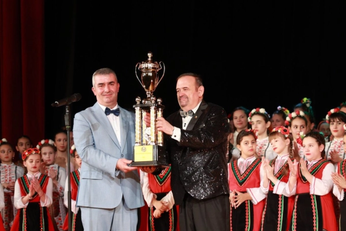 Народно читалище "Развитие-1870" получи отличието "Читалище на 2025 г.". Високата близо метър купа премина от ръцете на председателя на Съюза на народните читалища в България проф. Николай Дойнов в тези на председателя на Народно читалище "Развитие-1870" Данаил Лалев.