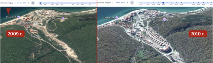 - При сравнение на сателитни снимки се вижда, че през 2010 г. са построени множество хотели и вили в имоти , през които дотогава е текла река.