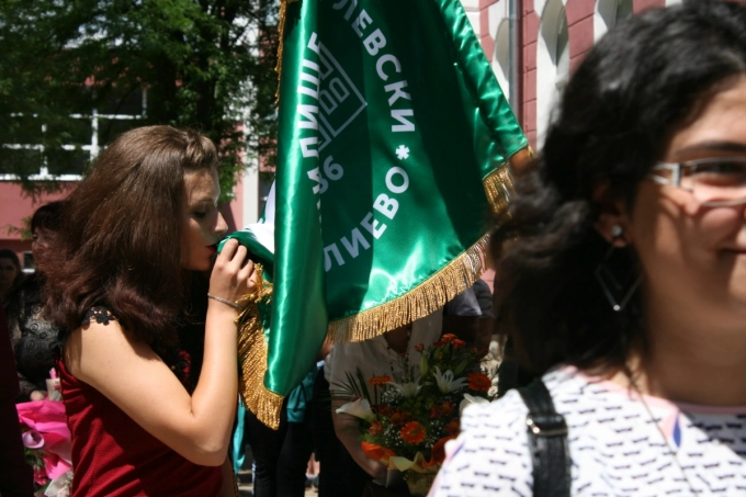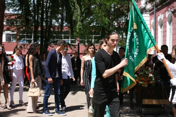 В последния си ден в училище дванайсетокласниците отдадоха почит на своя патрон, поднесоха венец пред бюст-паметника на Апостола в двора на училището и всеки се сбогува лично със знамето на училището.