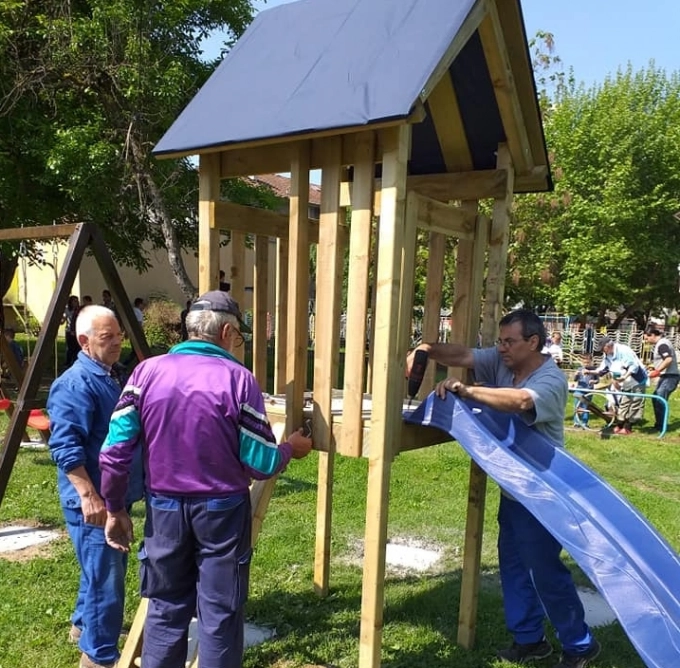 На детската площадка бяха монтирани и две нови съоръжения – люлка и пързалка.