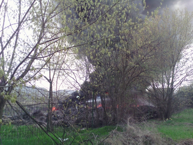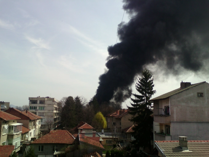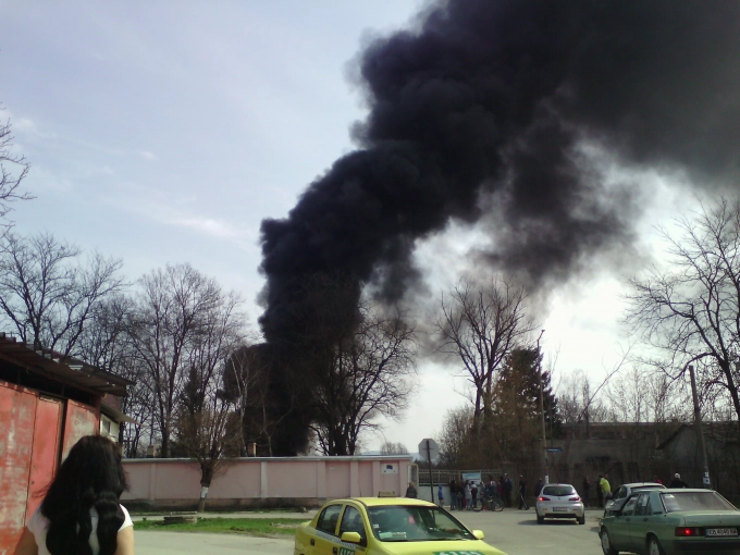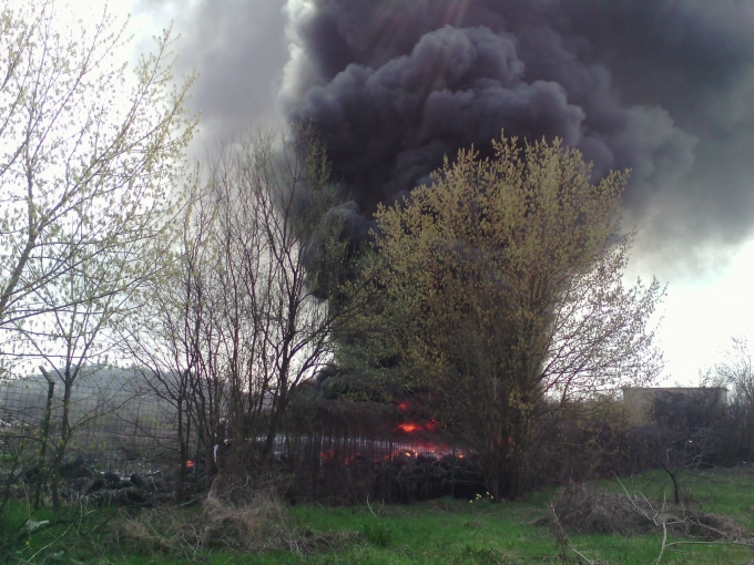Гъст черен дим се изви над Севлиево преди около половин час. Причината - някой бе запалил камара с автомобилни точно зад оградата на Психоболницата, откъм реката.