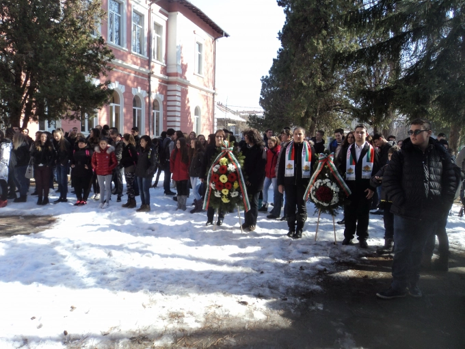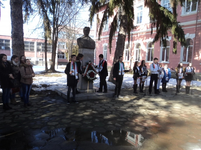 На 16 февруари пред бюста на Левски в двора на училището потомците на Апостола поднесоха венци и цветя. Церемонията беше съпроводена от запалените факли на почетния караул и от вълнуваща програма, изнесена от ученици под ръководството на Марияна Иванова – учител по български език и литература и Евгения Пенчева – преподавател по музика.