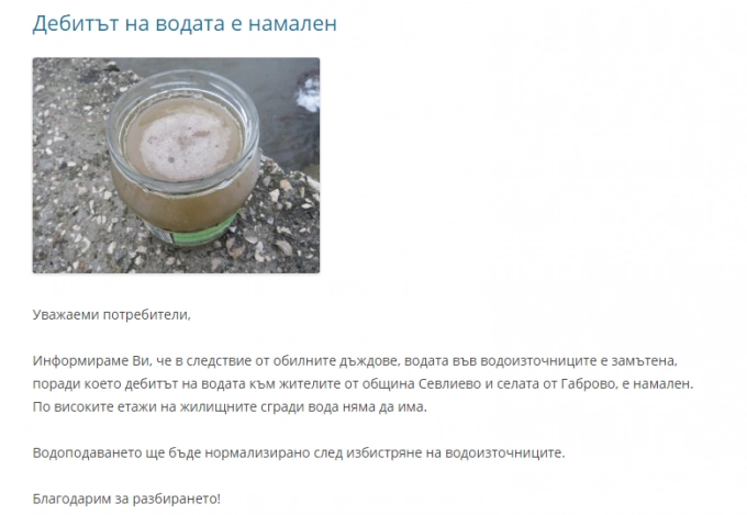 По същия начин е и друга публикация, която казва, че на една от севлиевските улици "днес няма да има вода". Кога е "днес" обаче, отново не става ясно.