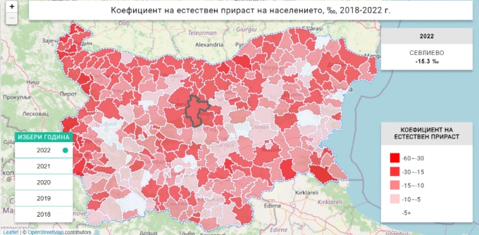 Къде с колко е намаляло населението и какъв е естествения прираст във всяка община, може да се види на итерактивните карти, ако последвате този линк.