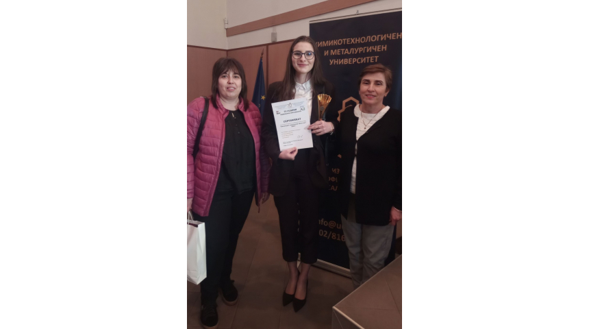 Представянето на прецентацията беше на 23 март т.г. в зала "Асен Златаров" на университета, а наградата на севлиевката връчи лично ректорът на Химикотехнологичния университет проф. д-р инж. Сеня Терзиева-Желязкова.