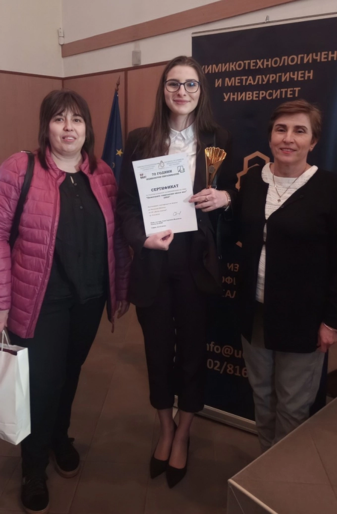 Конкурсът за презентации бе по случай 70 години инженерно образование в Химикотехнологичния и металургичен университет, а темата му бе „Химичните технологии около нас“.