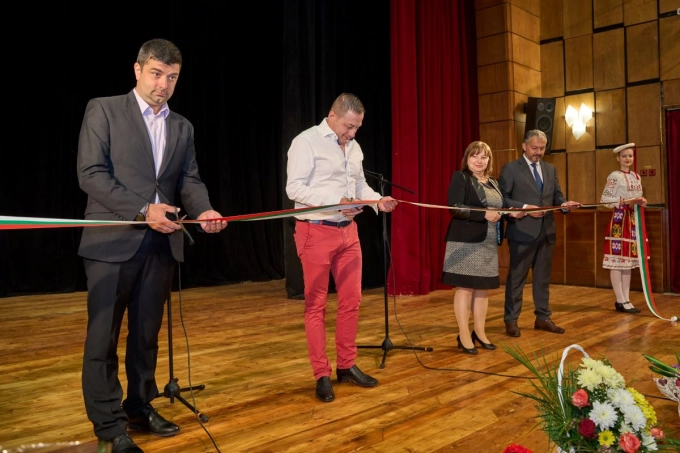 Лентата пред обновения салон прерязаха кметът на Севлиево Иван Иванов, Валя Станчева от името на "Севлиево 21 век", Емилиян Маринов - като председател на Читалището по време на ремонта и Михаил Йонков - президент на Ротари Севлиево, спомоществовател за ремонта, снимка: Минчо Тодоров