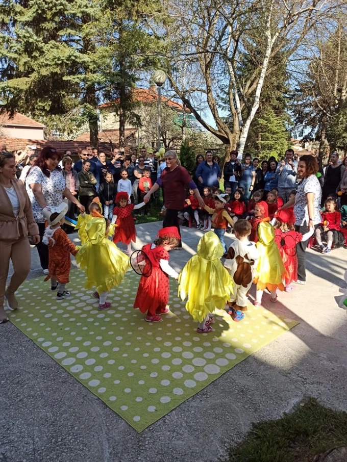 С пищна пъстра украса, с много балони, дворовете и на двете сгради грейнаха от детските усмивки. Родители и гости се потопиха в празнична атмосфера на най-пролетните празници, пресъздадена от децата на най-пролетната детска градина.