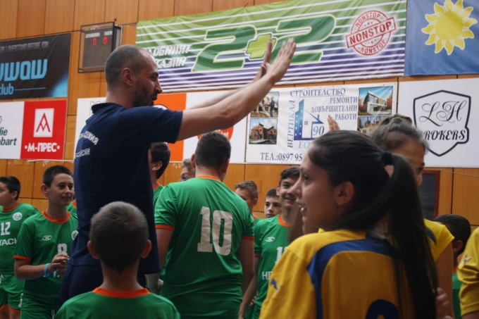 Матей Казийски не остави дете, без да докосне ръцете му в спортния поздрав на волейбола, снимка: "Севлиево онлайн"