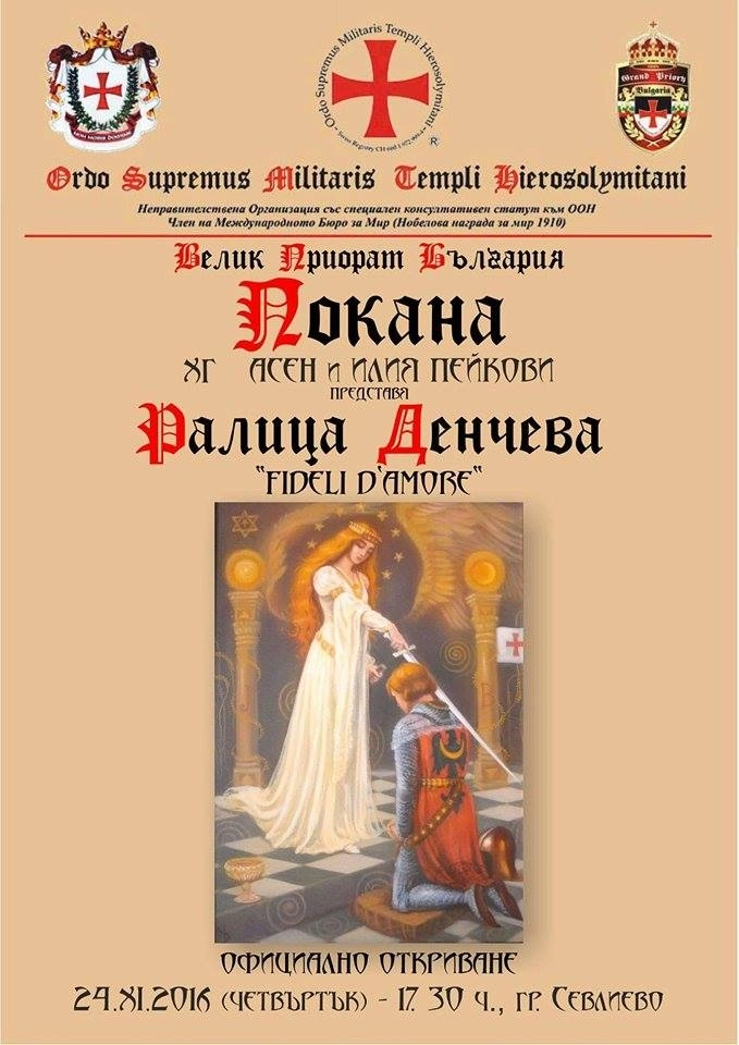 Орденът на рицарите тамплиери представя в четвъртък в Градската галерия на Севлиево изложбата на Ралица Денчева „FIDELI D'AMORE”.