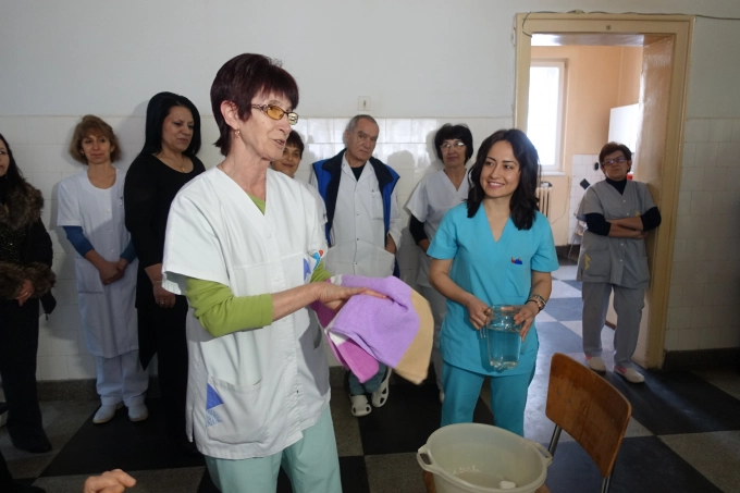 По традиция беше представен ритуалът „измиване на ръцете“, при който най-младата акушерка измива ръцете на тази с най-дългогодишен стаж. „Както леко се плъзга сапунът между ръцете, така лесно да се раждат децата. Колкото мехурчета във водата, толкова деца да се раждат. Както леко се лее водата, така да им е лек пътят в живота“, нарече акушерка Стойчева и пожела през тази година да се раждат повече бебета.