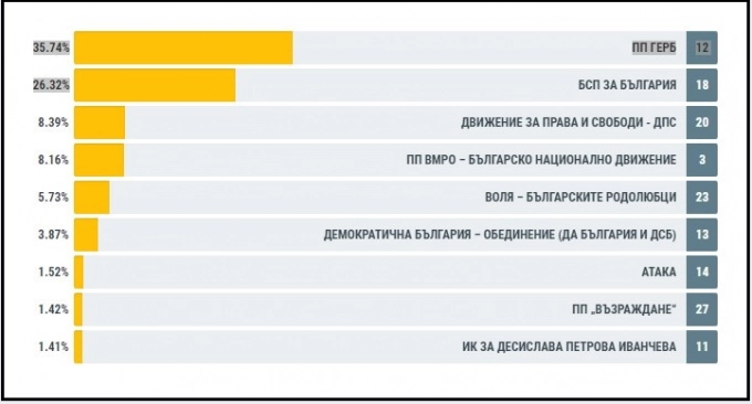 | 3 | ПП ВМРО – БЪЛГАРСКО НАЦИОНАЛНО ДВИЖЕНИЕ | 2 363 | 8.16% |