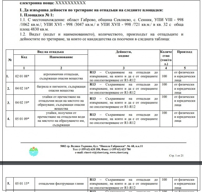 Разрешителното за съхранение на отпадъци съдържа 368 вида отпадъци
