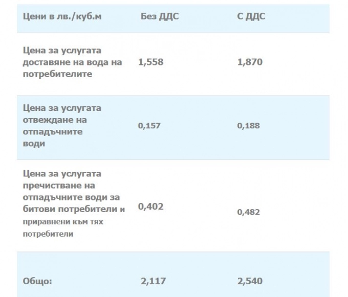 В момента цената за услугата „Доставяне вода на потребителите” на ВиК "Бяла" в Севлиево е 1.67 лв./м³ с ДДС. Това е цена за битови потребители. Към нея към сметките ни се добавят 16 стотинки за отвеждане на отпадъчните води и 0.39 лв./м³ за пречистване. Тези допълнителни суми не се начисляват на живеещите в селата, където няма канализация и пречиствателна станция. Крайната цена, която плащаме за вода в Севлиево в момента е 2.22 лв. с ДДС.
