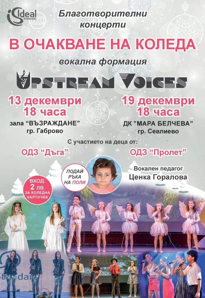 Предколедно настроение цари в репетиционната зала на вокална формация "Upstream Voices”. Певците на Ценка Горалова отново се подготвят за нови изяви, но засега са най-развълнувани от двата предстоящи коледни концерта - на 13 декември в зала "Възраждане“ в Габрово и на 19 декември в Дома на културата "Мара Белчева“ в Севлиево.