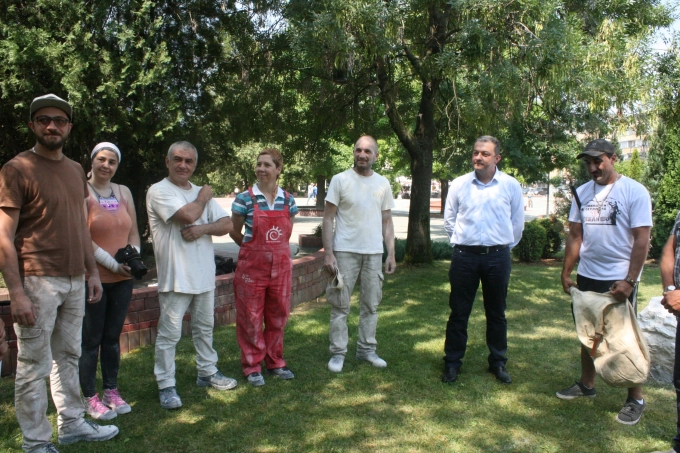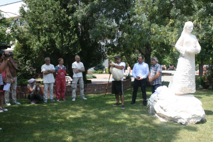 За откриването на новия символ на града ни днес се събра цялото общинско ръководство, но и всичките шестима скулптори, участници в симпозиума по скулптура "Севлиево 2017". Присъствието им на импровизираната церемония бе натоварено с особена емоция, защото те дойдоха направо от работа - с полепнали в бял прах дрехи, изоставили за малко собствените си творби, за да отдадат уважение на колегата си Каравланов, чиято скулптура първа се открива. Останалите пет ще бъдат разположени в парк "Казармите", издадоха от общинската управа.