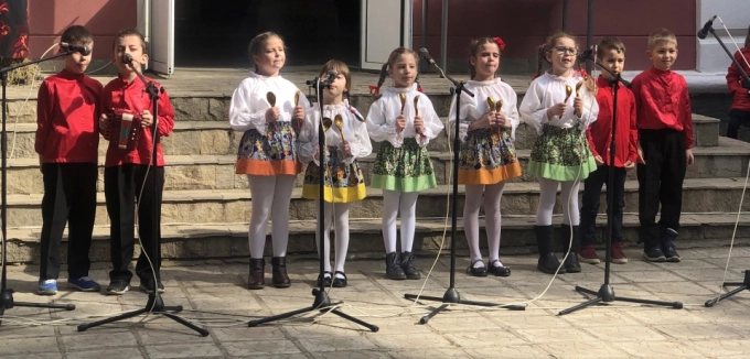 Малките танцьори от ДГ “Слънце“ с ръководител Оксана Цуркан представиха танца „Масленица“, а учениците от ОУ “Ст. Пешев“ с ръководител Димка Стойкова рецитираха стихове.